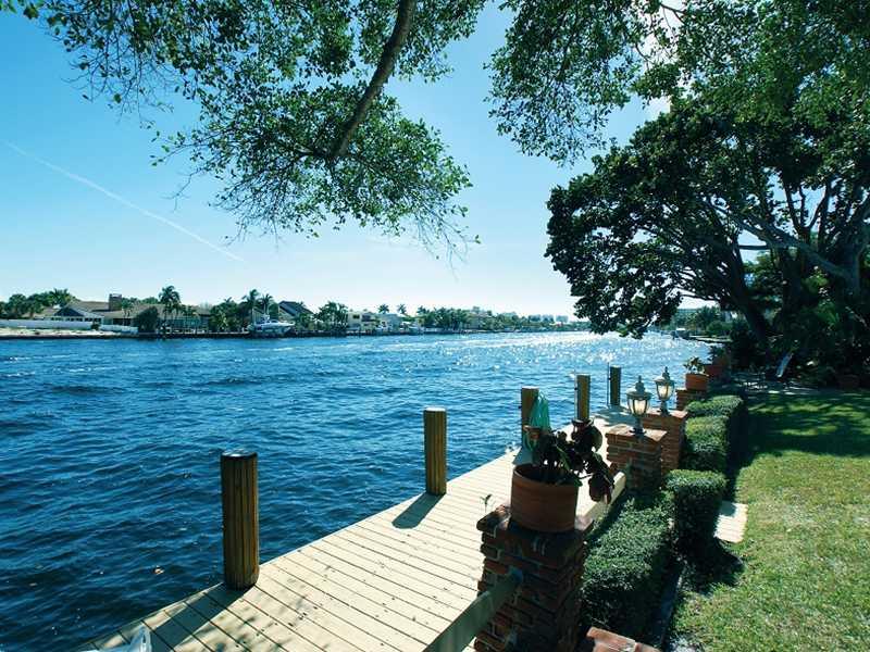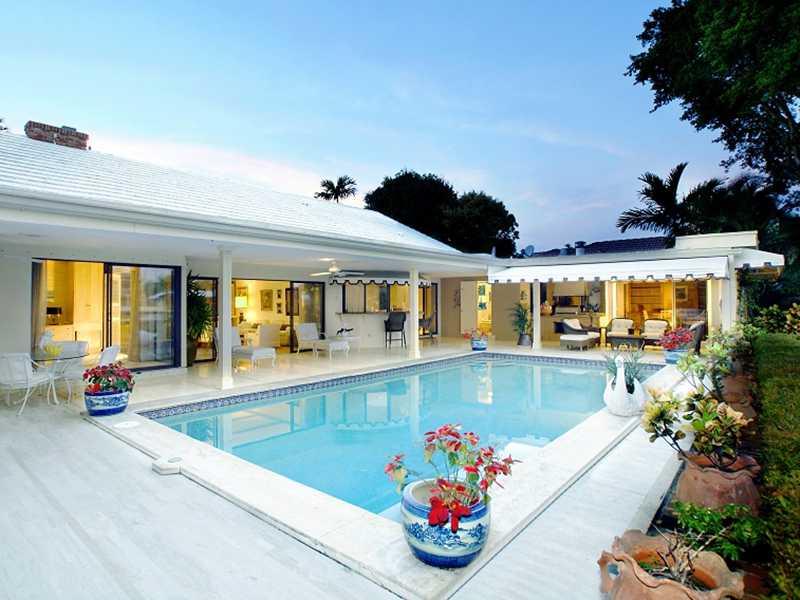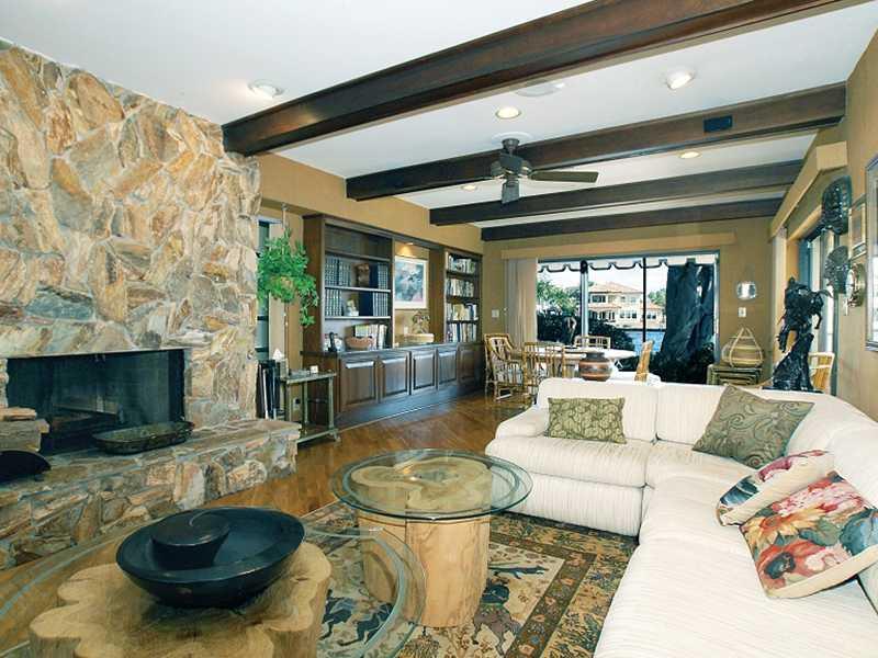 Direct Intracoastal home with 100 ft frontage. Herringbone-patterned parquet floors and 9±-foot ceiling with wormy chestnut beams & dentil moldings. Tile-floored kitchen has granite counters & full appliances including Bosch dishwasher & GE Profile range. Family room features a massive floor-to-ceiling wood-burning stone fireplace, beamed ceiling, oak flooring. Master bath is marble-encased with a separate tub and shower plus a double vanity. Marble pool patio & lanai with summer kitchen.