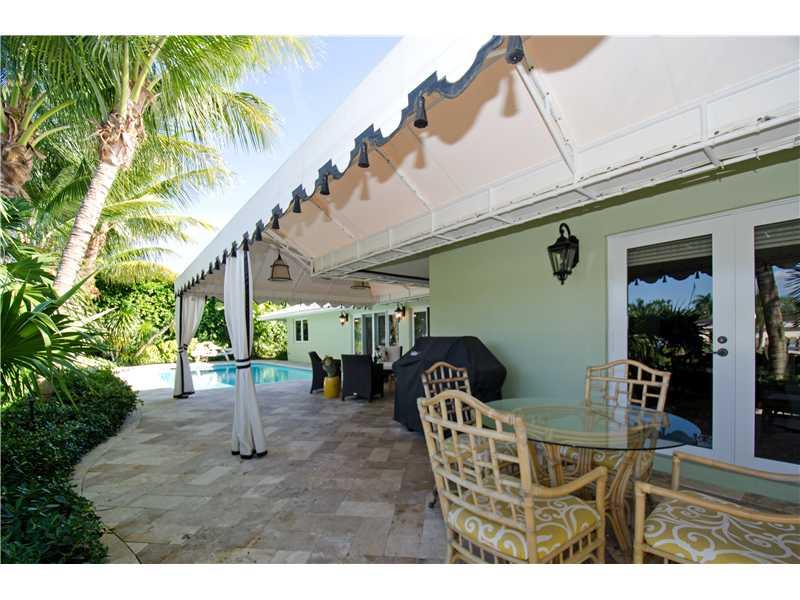 Elegant transformation from a traditional Florida ranch home to an extensive, no detail spared, West Indies style, 2009 renovation on 100 feet of water. High ceilings and sky lights in select areas provide added living dimension. 3 bedroom, 3 bathroom spl it floorplan envelops a spacious living area featuring a separate den/office and family room. Professional landscape design lends beauty and privacy. Custom built awning covered entertainment area provides an unforgettable pool and waterfront experience.
