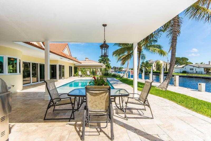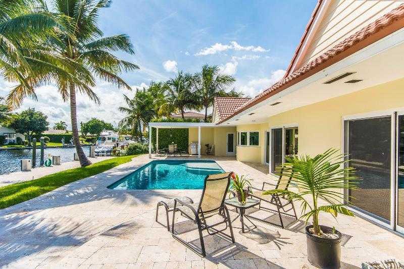 Beautiful 2013-2014 Remodel with picturesque waterfront views down the T-Canal, Over 3500 Total Sq Ft Per Building Sketch, No Fixed Bridges, Home Entertainers Delight, Boater's Dream with easy turn around access, just 3 homes from the Intracoastal, new c on-crete dock and pilings with tumbled marble to match pavers around the new heated pool, new gourmet chef's kitchen/Maple Cabinets/granite and top of the line stainless Thermidor appliances, impact windows and doors throughout, new marble flooring,& AC