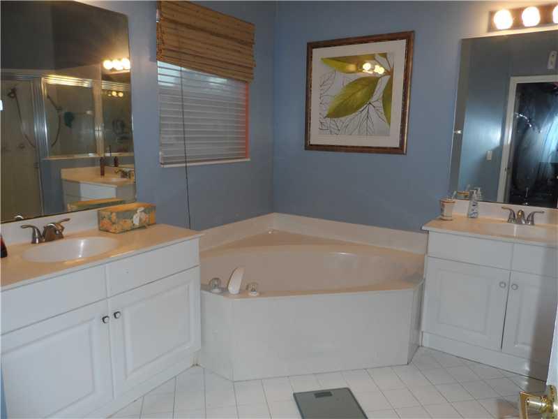 BEAUTIFUL FAMILY HOME LOCATED ON PRIVATE CUL-DE-SAC. PREMIUM LAKE LOT. SUPER LARGE BACKYARD. FORMAL LIVING AND DINING ROOM PLUS SEPERATE FAMILY ROOM. LARGE EAT IN KITCHEN WITH SNACK BAR COUNTER. SPLIT BEDROOM PLAN. NEWER A/C UNIT. CERAMIC TILE THROUGHOUT EXCEPT BEDROOMS WHICH ARE CARPET. LIGHT AND BRIGHT. HOA INCLUDES: 24 HR MANNED GUARD, CABLE TV, ALARM SYSTEM AND LAWN MAINTENANCE, SPRINKLER SYSTEM. COMMUNITY POOL AND GYM. PERFECT FOR A LARGE FAMILY. GREAT SCHOOLS.