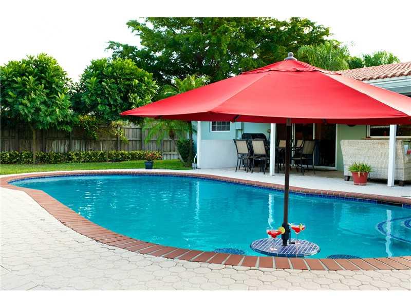 This spacious remodeled 4 bedroom/2 bathroom pool home is ready for it's new owners. Garage has been converted into 4th bedroom that can be a great space for the family room or home office. Split bedroom plan. Open kitchen with granite and stainless stee l appliances. Laminate wood floors, tile & carpet. Tropical Oasis in your own back yard w/pool and covered outdoor entertaining space. Tile roof & circular driveway, fenced yard. Newer roof & A/C. East side & a short drive to the beach.
