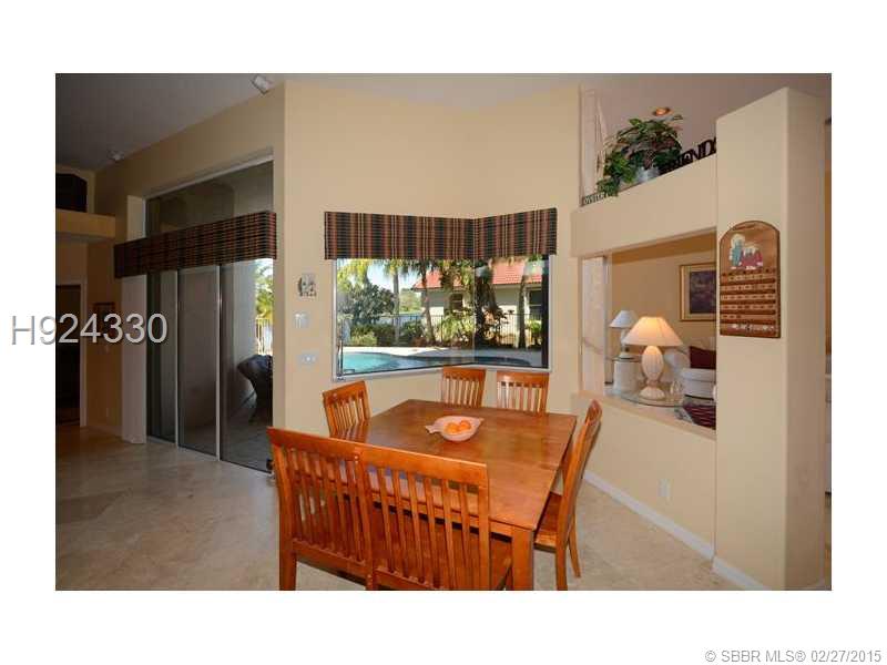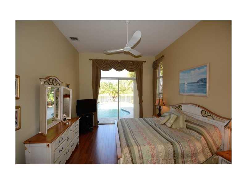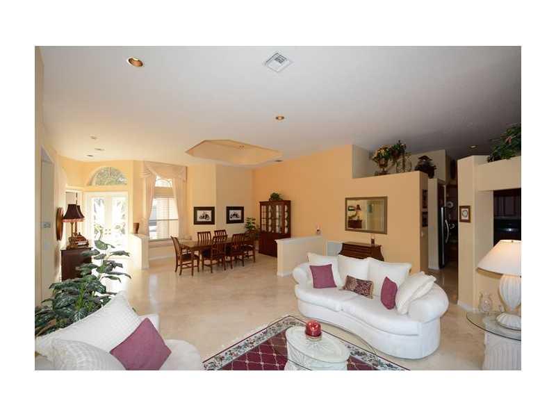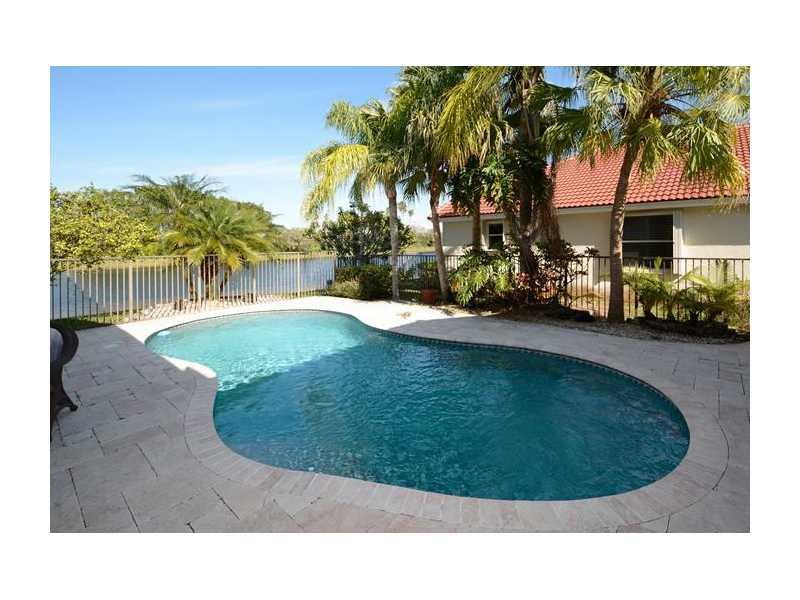 Without a doubt, this waterfront, pool home is nestled within one of Weston's most elegant communities. This spacious, one story 4 bedrooms PLUS a DEN, 3 bath home has gorgeous travertine floors throughout the common areas and laminate floors in all bedro oms. Expansive living, dining, kitchen and family room. Remodeled kitchen with 42" cabinets, granite and stainless steel appliances. Beautiful patio area overlooking pool and water. 3 car garage, pavered driveway and walkway. This home won't last.