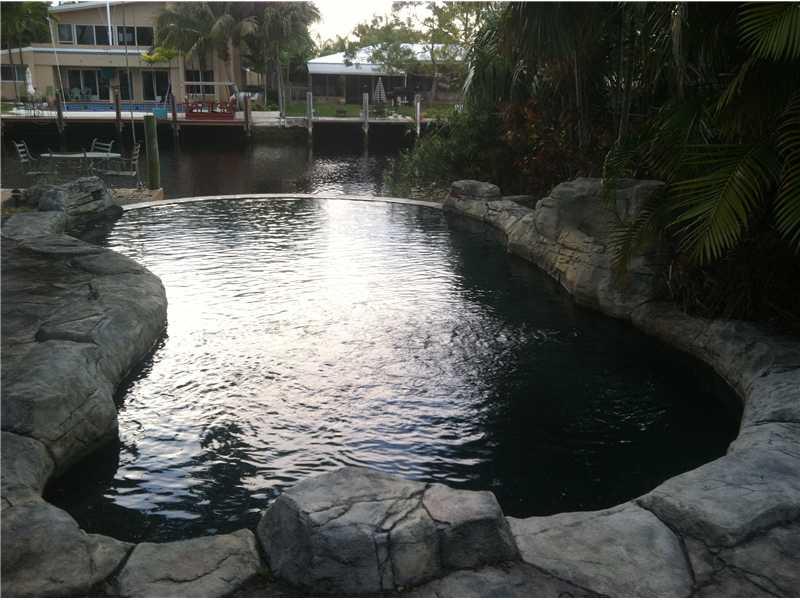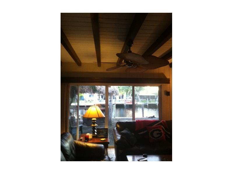 Bring your boat! Make this one your own. Spacious 2/2 with only one high fixed bridge located in Snug Harbor.Open floor plan. A must see back yard. Pool with 2 waterfalls and Tiki Bar. Master bedroom with views of the pool and water and walk in closet. Ex posed wood beams and fireplace. Needs some updating