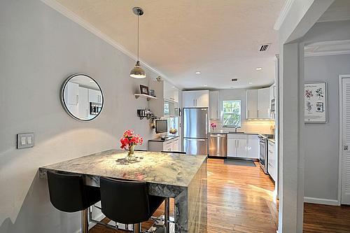 Everything you've ever wanted...under one roof! Gorgeous Victoria Park 3Bed/2Ba renovation offers an open floor plan featuring a sunny kitchen w/quartz countertops, stainless steel appliances, & breakfast nook. The living room boasts a stunning fireplace! A formal dining room, laundry room, bonus room, impact windows, metal roof, whole-house generator, lush, beautifully landscaped grounds, free-form pool w/large pavered patio complete the package. You will love living here!