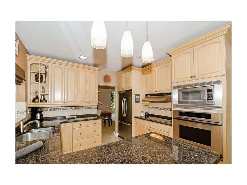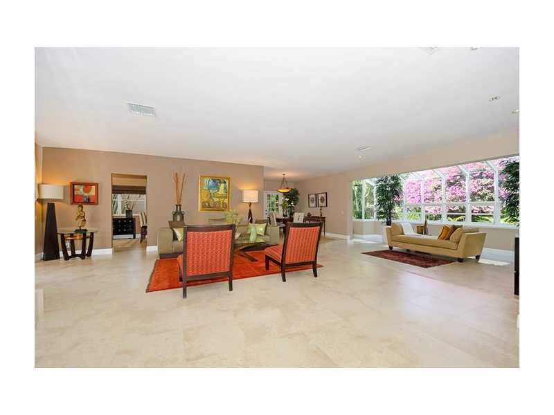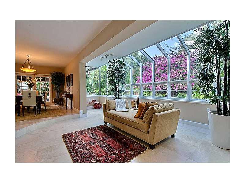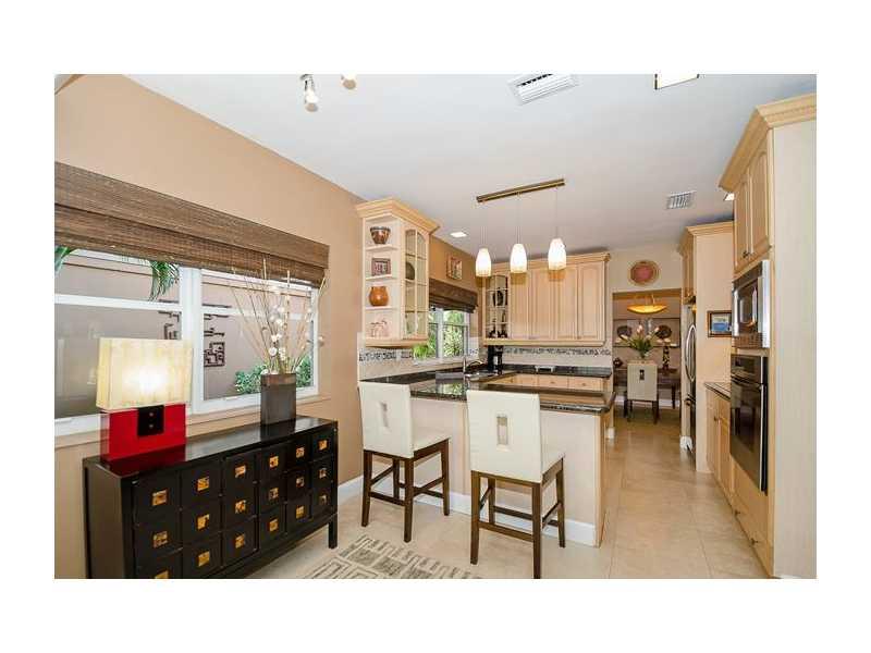 A California influenced contemporary located in security-patrolled Seven Isles. Wide open and bathed in light this 3BR/2BA single story offers an immense Great room with Solarium bay, a separate Family Room, Den and a Formal Dining Room. Features include a Zen-like atrium with meditative fountain, a private master w/2-walk-in closets, newly updated spa-like baths, a Chef's kitchen with Breakfast bar and an over sized 2-bay garage. A 38x13 covered lanai overlooks a sparkling pool and fenced gardens