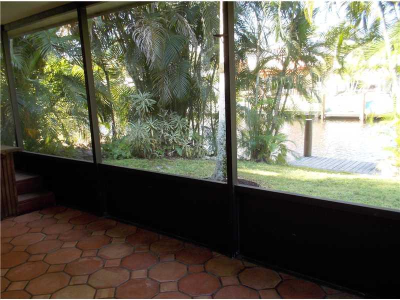 Waterfront 3 bed 2 bath home with 60 ft of water frontage- no fixed bridges! Mid century home with high vaulted ceilings- lots of natural light from windows across the front and back of open living areas- tile floors throughout. Screened porch with hot tu b overlooking tropical yard & the water. Area in front of dock was dredged for sailboat with over 5' 5" draft Shady Banks is a unique neighborhood offering 2 parks, one way in/out & surrounded by the New River. Minutes to downtown, Las Olas and the beach.