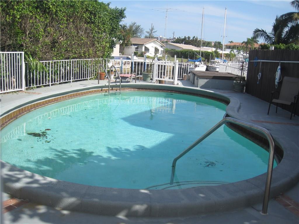 This beautifully updated 2 bedroom 1 bathroom townhome is located in a waterfront complex within walking distance of the beach. This adorable home features many high end upgrades such as REAL hardwood floors, gorgeous granite countertops in kitchen & bathroom, stainless steel appliances, spiral staircase, & French doors that open up to beautiful community pool (although seems like it's yours) right in your backyard overlooking the canal. 25 feet of dock space & access to the ocean w/ NO fixed bridges.