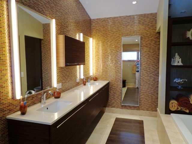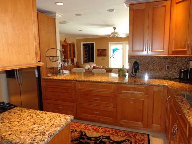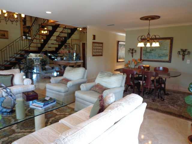 Gorgeous updated waterfront with wide water view, Saturnia floors & 6" baseboards thru-out, vaulted ceilings, crown molding, impact glass, maple, granite & stainless kitchen, all baths redone have Italian vanities with granite & tumble marble showers, den with built in oak shelves, custom master walk-in closet. 2nd level deck overlooking Southlake has Trex decking & wet bar. 50x20 dock with water & electric, tumble marble patio with wet bar. 35KW gas generator. Den can be 4th bed.