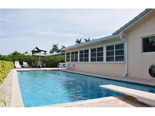Immaculate waterfront, pool home on great tree lined, Cul-de-sac street with sidewalks! No multi-family. Large house with living rm, formal dining rm, eat-in kitchen, big family rm, separate laundry rm & half bath! Impact windows, fenced property, recentl y resurfaced pool has diving board, pavered patios, sea wall joints sealed & new batter pilings added, boat lift & ocean access with fixed bridges -- lowest is 6' clearance at high tide. 20 mins to intracoastal! House is in impeccable condition!