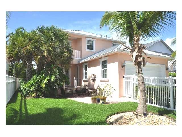 Custom 2 story like new features blonde wood floors, European dark wood kitchen with granite counters, stainless appliances & butlers pantry, all open to family room, impact windows & doors, standing seam metal roof, 9' ceilings, crown baseboards, marble master bath with Jacuzzi tub, designer vanities, tray ceilings & balcony, plantation shutters & blinds, designer fans, 2 A/C systems, 2 car garage, inviting 30' front porch, vinyl fence in rear, lush landscaping. ½ block to Intracoastal.