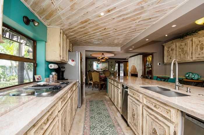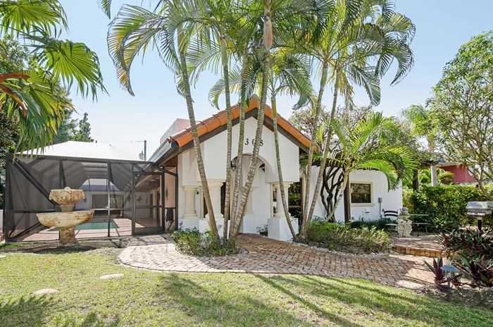 Beautifully updated European style beach villa situated on 1 1/2 lots & located on one of only 9 streets nestled between Birch State Park and the Atlantic Ocean. Gorgeous eat-in kitchen w/huge granite island & stainless appliances. Spacious living room w/ Travertine marble flooring & romantic double-sided fireplace. Impact resistant glass French doors open out to a 50' screened porch w/ a 40' lap pool. Huge Chicago brick driveway for multiple cars plus a tiled 2-car garage. Live the beach lifestyle!