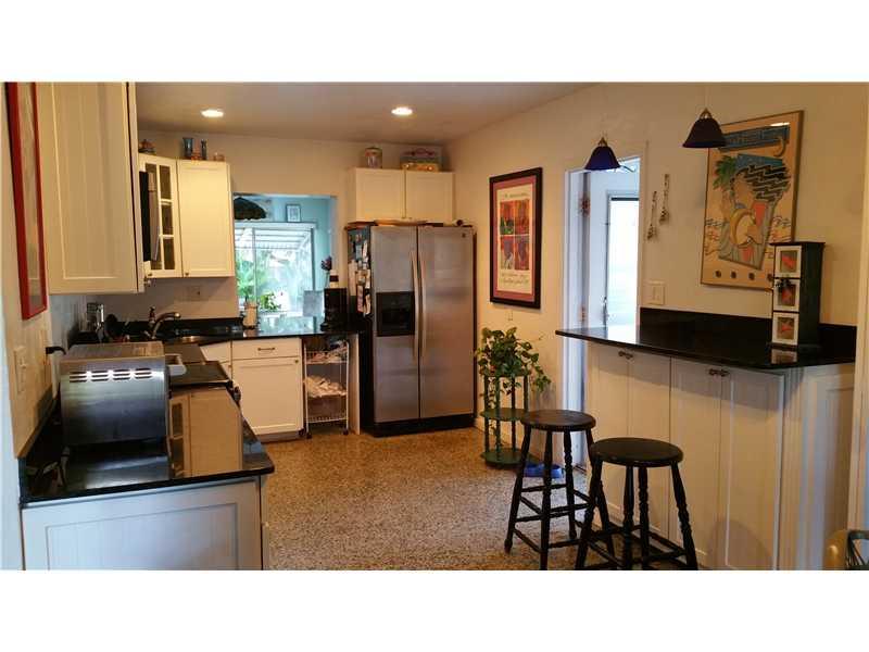 Excellent location in million $ neighborhood, walking distance to the beach with private gated access or to the beautiful park at the Hillsboro Inlet. This home has a wood burning fireplace and a huge recreation room with a wet bar with a pass-through to the kitchen, which opens to the pool/patio area. Garage converted to 3rd BR with 1/2 bath.