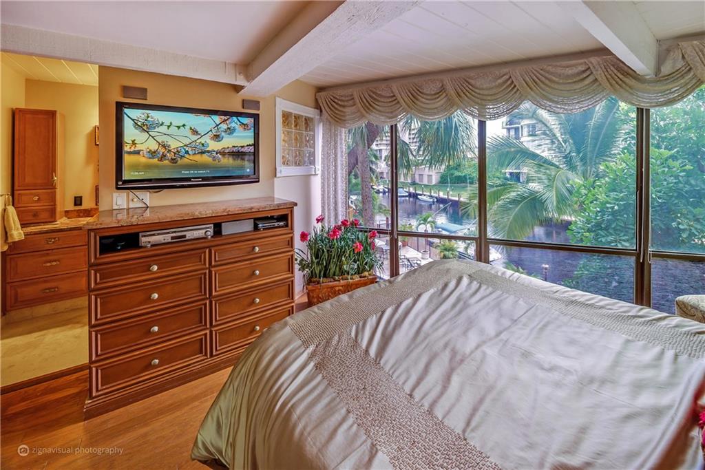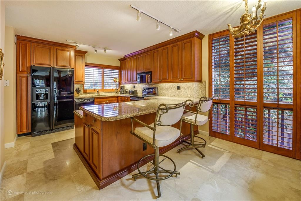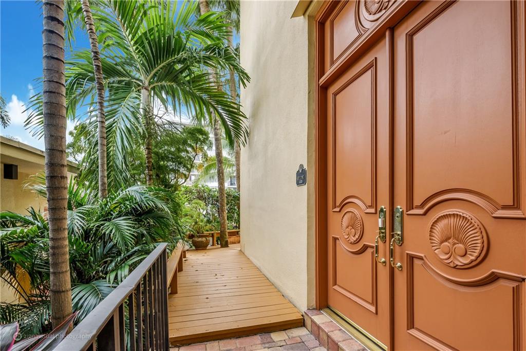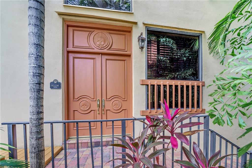 Stunning double doors w/carved seashell transom open to nestled, end-unit coach townhome. Waterfront, no fixed bridges, 32' dock facing pool, private deck, polished Italian marble & hardwood floors; marble/mahogany custom staircase meanders to loft/3rd bedrm; mahogany entertainment center. Kitchen w/granite & custom mahogany cabinets, black appliances; remodeled bathrooms w/Jacuzzi tub; tiled 2-car garage w/storage. Walk to Kaluz for martinis or over ICW to the beach! Has look & feel of private residence