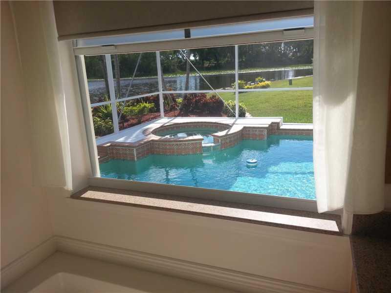 Beautiful 3 bedroom 2 bath home with open floor plan, Screened Patio with Solar Heated Swimming pool and jacuzzi overlooking tranquil lake views. Kitchen has been updated with 42"Natural Maple Wood Cabinets & Granite Counters. Master bath has been updated with newer vanities & Granite Counters. Interior features custom crown molding, California Closets,plenty of storage space and Separate laundry room. Garage has custom built in cabinets, drawers and Workbench. Great Community with Excellent Schools.