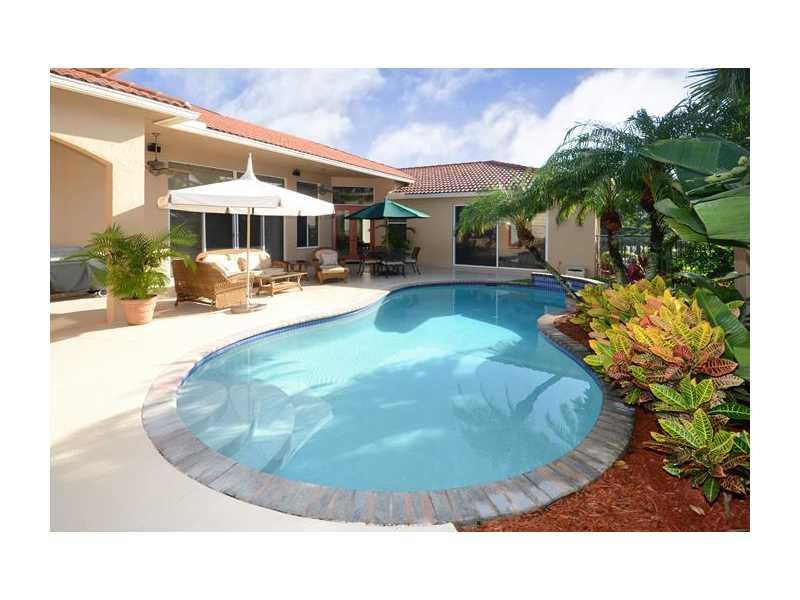 Beautiful courtyard home with lake views in prestigious Weston Hills Country. This 7 bedroom, 4 bath home includes a separate guest house perfect for mother-in-law quarters or a pool house. All 1st floor rooms overlook a beautiful pool area with space for outdoor entertaining. Fenced backyard overlooking the lake. Master bedroom has separate sitting area & walk in closets. Upgraded kitchen with wood cabinets, granite counters & SS appliances. Bathrooms have been updated. Golf membership is transferable.