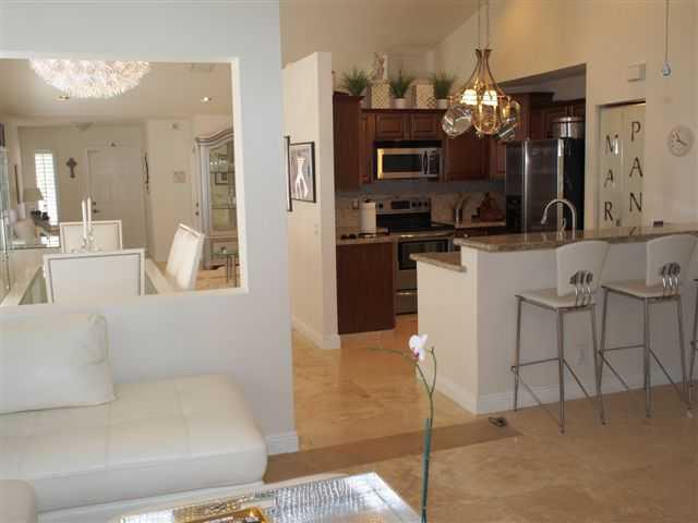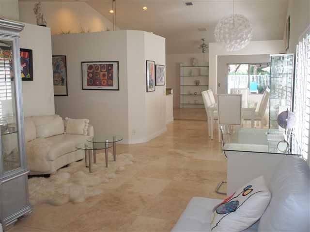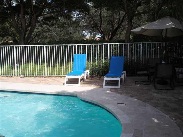 This one is a Cream Puff. COMPLETE REMODEL. Gorgeous 24 inch Marble floors throughout living areas. Custom kitchen with 42 inch wood cabinetry, granite countertops and backsplash and stainless steel appliances. New Heated Pool with travertine decking, Ne w heater in Private fully fenced yard backing to No Neighbors. New Master bath with roman tub, dual sinks, granite & more. Plantation Shutters, Decorators touches everywhere. Shows light and bright. Security system, Walk to community pool, playground