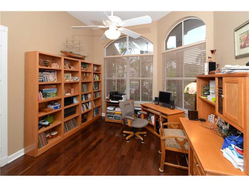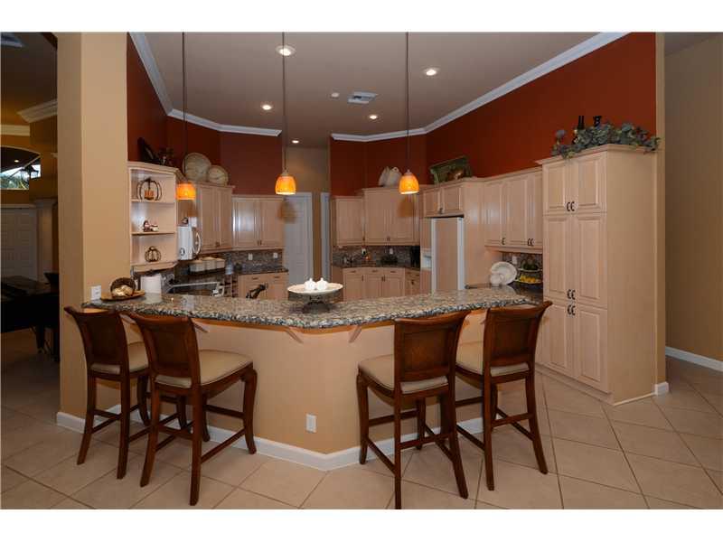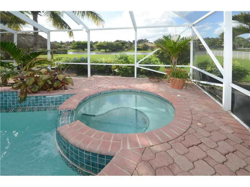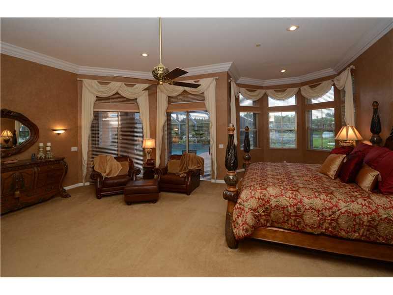 Acre lot on lake. 5 bedroom plus office/den with 3 car garage. Central vacuum, upgraded lighting throughout, granite countertops in kitchen & all neutral crown moldings. Custom heated pool and spa. Tiki hut. 2 a/c units equipped with ultra violet to prev ent mold... Also solar panel on roof & accordion shutters.