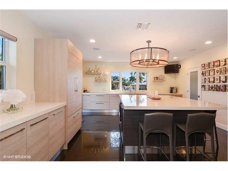 This desirable Seven Isles location is a Yachter's paradise with close proximity to the ocean and Las Olas Boulevard. Striking 3 bedroom, 3 bath residence boasts mature landscaping, pool, and 100 feet of water frontage. Exquisitely renovated, this home ha s porcelain and wood floors throughout, back-lit onyx bar with wine storage, wood burning fireplace, spacious designer kitchen, quartz counter tops, and Italian cabinetry. Oversized garage with ability to park 3 vehicles.