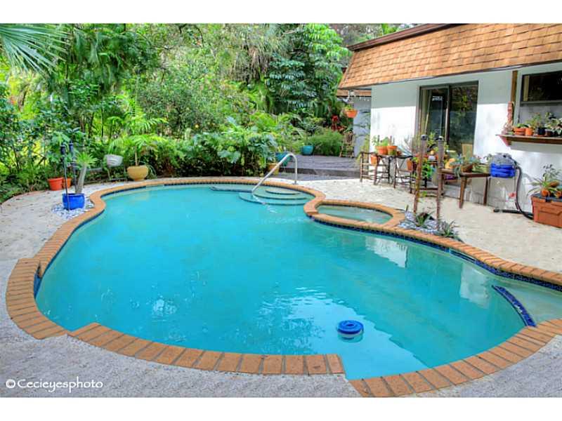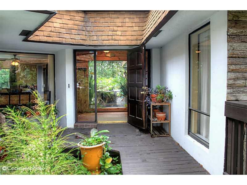Unique. Intriguing. Great family home in highly desirable gated community. This home was designed with large lot and tropical views in mind. Many floor to ceiling windows and sliding doors create an abundance of natural light. Feels like you are livin g amongst the trees and plants in a tropical environment. Large open kitchen has newer cabinets, granite counter tops and stainless steel appliances. Beautiful warm wood flooring in living areas and carpeting in bedrooms. Den. Large patio & more.