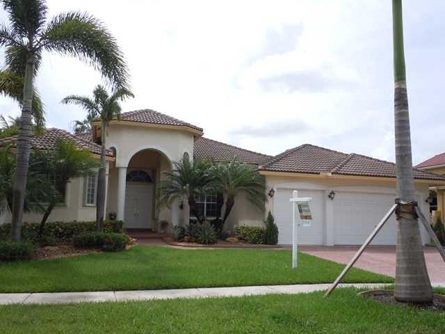 WOW!!Run don't walk to be the Lucky Buyer to own this lovely 1-story 5 bedroom model, plus master bedroom sitting room & play room/den. This gorgeous home boasts elegant coffered ceilings, neutral tile floors and engineered wood flooring!!The 3 way split floor plan, along with the upgraded kitchen with 42" wood cabinetry & Granite counters, will excite your family. The salt system Pool, is solar heated, in a lovely screened with covered patio. Accordion shutters,surround sound,2 zone A/C-(1 new 2012)