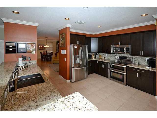 Just what you have been waiting for! Beautiful Edison 2 Model offering 4 bedrooms & 4 full baths. Gorgeous new kitchen with dark 42" cabinets & cream granite. New SS appliances. French doors open to covered patio, fenced back yard with tropical landsc aping. Neutral tile floors downstairs, new carpet upstairs. New A/C! Immaculately maintained. Can easily be adapted to 5 bedrooms. Extra large family room. Ample room for a pool. Water views. This is a very special home!