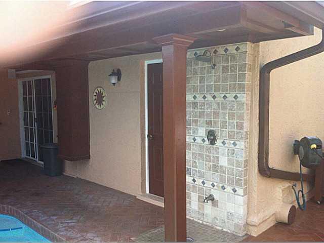 WOW! UPGRADED THREE BEDROOM TWO BATH SINGLE FAMILY HOME IN DESIRABLE AREA, REMODELED MASTER BATH AND UNBELIEVABLE OUTDOOR POOL AND PATIO, INCLUDING STEREO AND SPEAKERS, COVERED TRELLIS WITH OUTDOOR KITCHEN WITH HUGE GRILL, REFRIGERATOR, SINK AND TILED WAL LS AND TOPS. LARGE RECREATION ROOM WHICH COULD BE CONVERTED TO A FOURTH BEDROOM, FRENCH DOORS, GUTTERS, FANS, GLASS INSERTS IN FRONT DOOR AND SIDELITE. HURRY, AS THIS GREAT VALUE WON'T LAST!