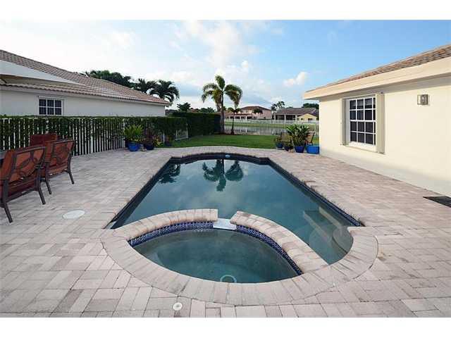 Beautiful remodeled home in "The Lakes", Weston! 4 bedroom, 2.5 baths. Wood laminate floors in common areas and master bedroom. Open floor plan including spacious kitchen with granite countertops and updated appliances. Accordian shutters. Newly painted e xterior. Gorgeous backyard with pool and lake!
