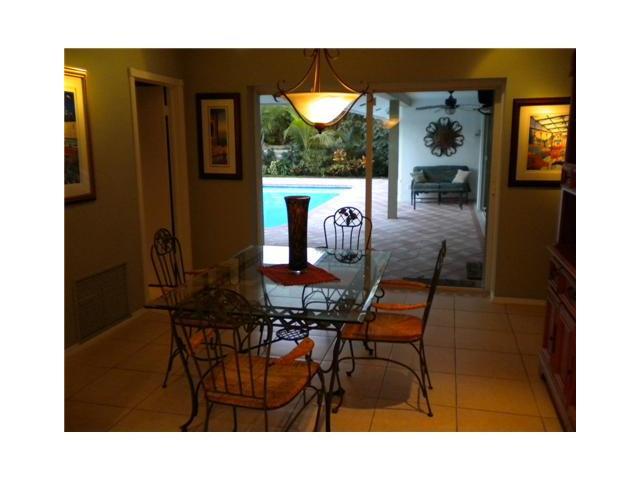 Beautiful and spacious Coral Ridge Country Club pool home featuring 3 large bedrooms, 3 full bathrooms (one cabana bath), remodeled master bath, 2 zone A/C, interior laundry room, accordian shutters and a 400 sf family room with wet bar, refrigerator and wine cooler(family room can be converted back to a garage - or make it an in law suite with its own entrance). All rooms open out to the pool area with sliding glass doors that retract.