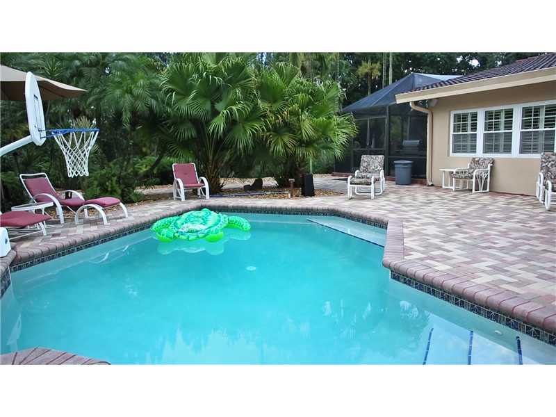 Gorgeous, sophisticated home, meticulously updated and perfected. Tropical paradise with lushly landscaped acre, in quiet, secluded neighborhood, close to everywhere you need to be. Home boasts the finest details with crown molding, porcelain floors and p lantation shutters throughout. Updated kitchen and baths, split plan, large, light-filled family room and very open floor plan. Large Master has 2 walk-in closets, sitting area, overlooking screened patio, unscreened pool/spa. Very private and special!