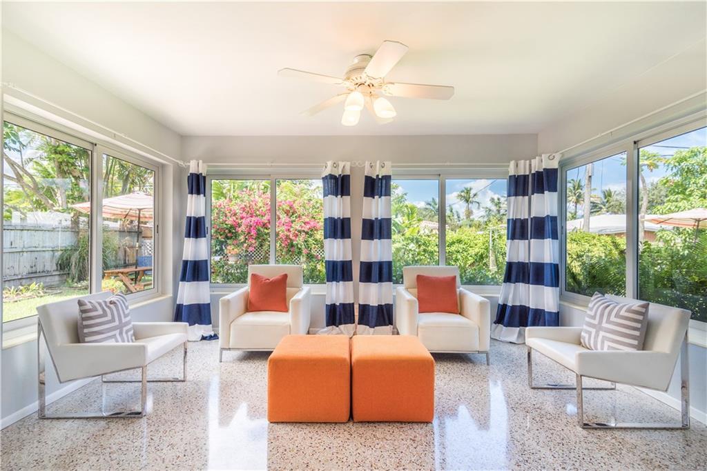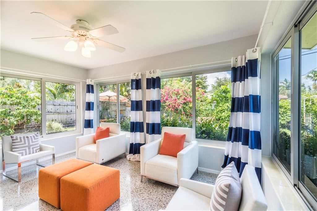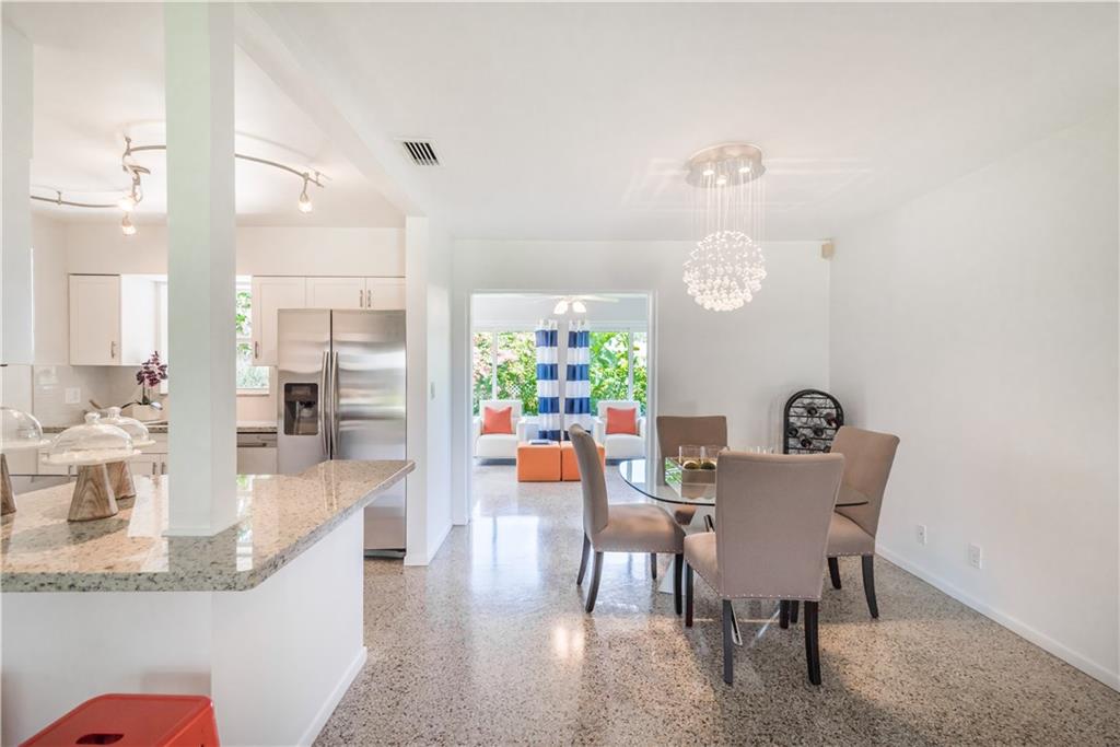 Classic Mid-Century residence located in sought after East Ft. Lauderdale, brand new modern kitchen, with maple custom crafted cabinets, granite countertop, backsplash and stainless steel appliances, gleaming terrazzo floors, s-tile roof, impact resistant windows, upgraded electrical system, NEST A/C Thermostat and newer A/C system, French doors,restored bathroom tile and floors, mature landscaping with upgraded irrigation system. Only minutes away from the beach and shopping.
