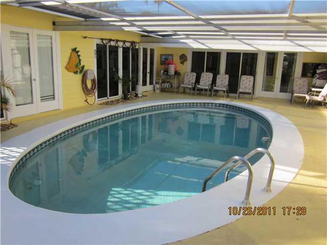 Very unique style home, 4/3, all rooms overlook pool area, 2 master bedrooms, ceramic tile floors throghout,family room, updated kitchen, newer s-tile roof, split bedrooms, 2-car garage, corner lot,cirlce driveway, beautiful cathedral ceilings in every ro om. Screened pool area, lush landscaping, fenced yard. Bayview school district. Easy to show! Best Value In Coral Ridge!!