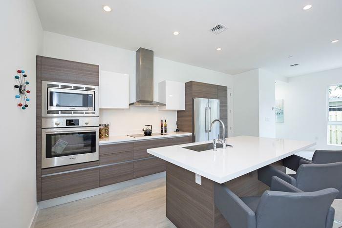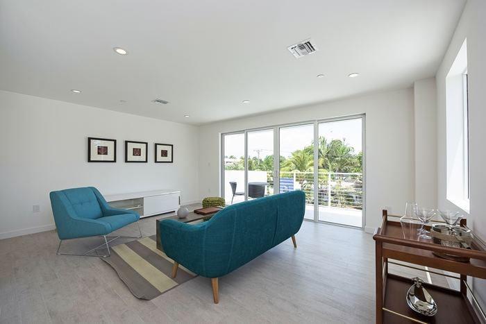 VACATION LOCATION - New contemporary corner home. Very spacious with high ceilings, open modern kitchen with Italian cabinetry, Bosch appliances, solid poured concrete and CBS construction, all impact windows and exterior doors, multi-zoned ac, full laundry room with sink an d added cabinetry, solid core interior doors, Open 3rd level terrace, optional salt water splash pool. Fabulous location in Coral Ridge's Bayview neighborhood. Ready for occupancy! NE Corner - Unit 2