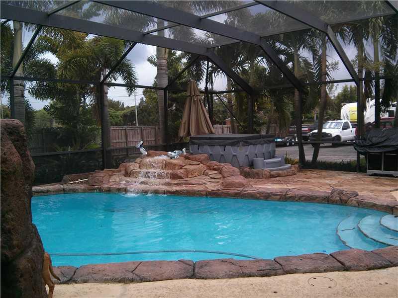 SHORT SALE. BUILDER'S ACRE IN DAVIE OAKS!3BR/2BA, GRANITE KITCHEN, WOOD CABINETRY, GREAT CURB APPEAL WITH CUSTOM LANDSCAPING/LANDSCAPE BORDERS, FREE-FORM POOL, ROCK WATERFALL, BAR AREA+HOT TUB. REAR BUILDING IS 36X24=864 SQ FT & PERMITTED.DRIVEWAY TO BACK OF PROPERTY & BUILDING. CURRENTLY SET UP AS A 5 BR, EASY TO RE-CONVERT. HALF OF 2 CAR GARAGE WAS CONVERTED TO TV ROOM. A/C 2 YRS OLD & NEW A/C LINES. NEWER SEPTIC SYSTEM. GREAT LOCATION-CITY WATER. FULLY FENCED. WASHER/DRYER DO NOT STAY.