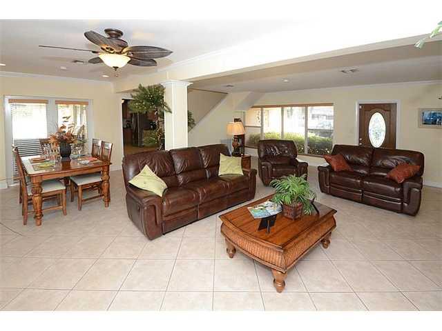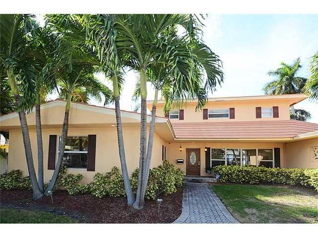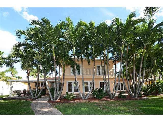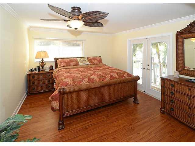 LIVE ON THE ISLES!This tastefully updated Tommy Bahamas style home has 85' of water frontage with new dock,hurricane impact doors and windows throughout, 2 new A/C's, new LG appliances and wood floors. The open floorplan with inviting fireplace and wrappi ng french doors with lots of natural light avails tranquil views of mature palms and waterway. The large master suite makes up the entire 2nd floor!Large sitting room/4th bedroom, and private balcony. Be sure to view the Virtual Tour and 4 Panoramas!!!