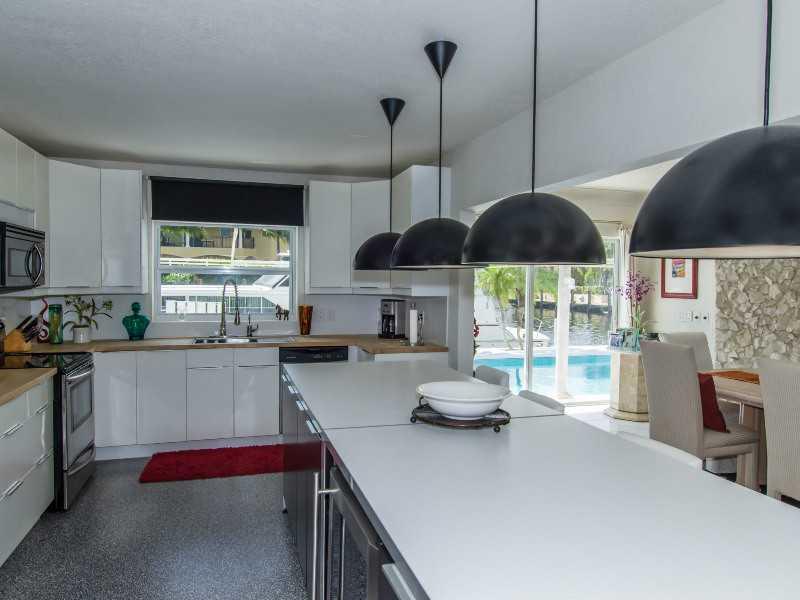 Yachtsman's Paradise! A beautiful updated home with spectacular views. Situated on a corner, extra wide canal lot (perfect for catamarans)! With direct access to Intracoastal and only 5 minutes to Hillsboro Inlet. No fixed bridges! Two extra large dock s can accommodate an 82' and 72' yachts. Use one for your boat, rent the other. Bright open concept living, dining, kitchen together with relaxing pool is a treat for your guests. Seller may take back financing or a small trade to expedite the sale.