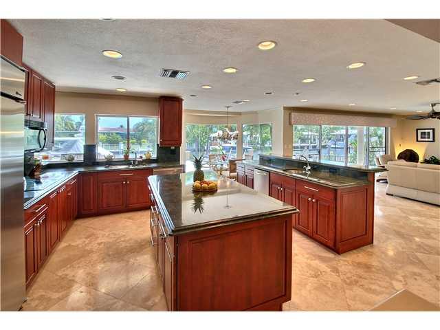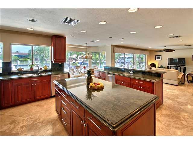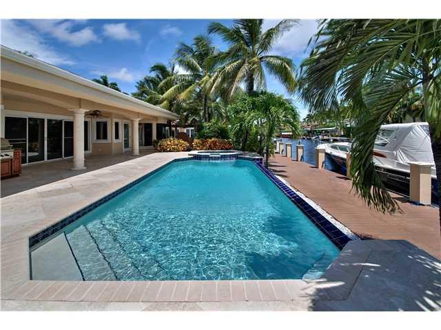 OPEN, SPACIOUS AND EXCEPTIONALLY CHARMING HOME. 100' +/- OF WATER FRONTAGE WITH NEWER 100' MAINTENANCE-FREE DOCK, BUILT IN 2011. SPACIOUS FAMILY ROOM WITH LARGE WINDOWS.THE WONDERFUL AND BRIGHT KITCHEN IS A CHEF'S DELIGHT! PASS-THRU FROM KITCHEN TO OUTDOO R GRANITE BAR-B-Q AREA. FOUR LARGE BEDROOMS INCLUDING TWO (UP & DOWNSTAIRS) SPACIOUS MASTER SUITES. PERFECTLY LOCATED OFF PRESTIGIOUS LAS OLAS BLVD, CLOSE TO BEACH, SHOPPING, RESTAURANTS, NIGHTLIFE AND INTERNATIONAL AIR AND SEA PORTS.