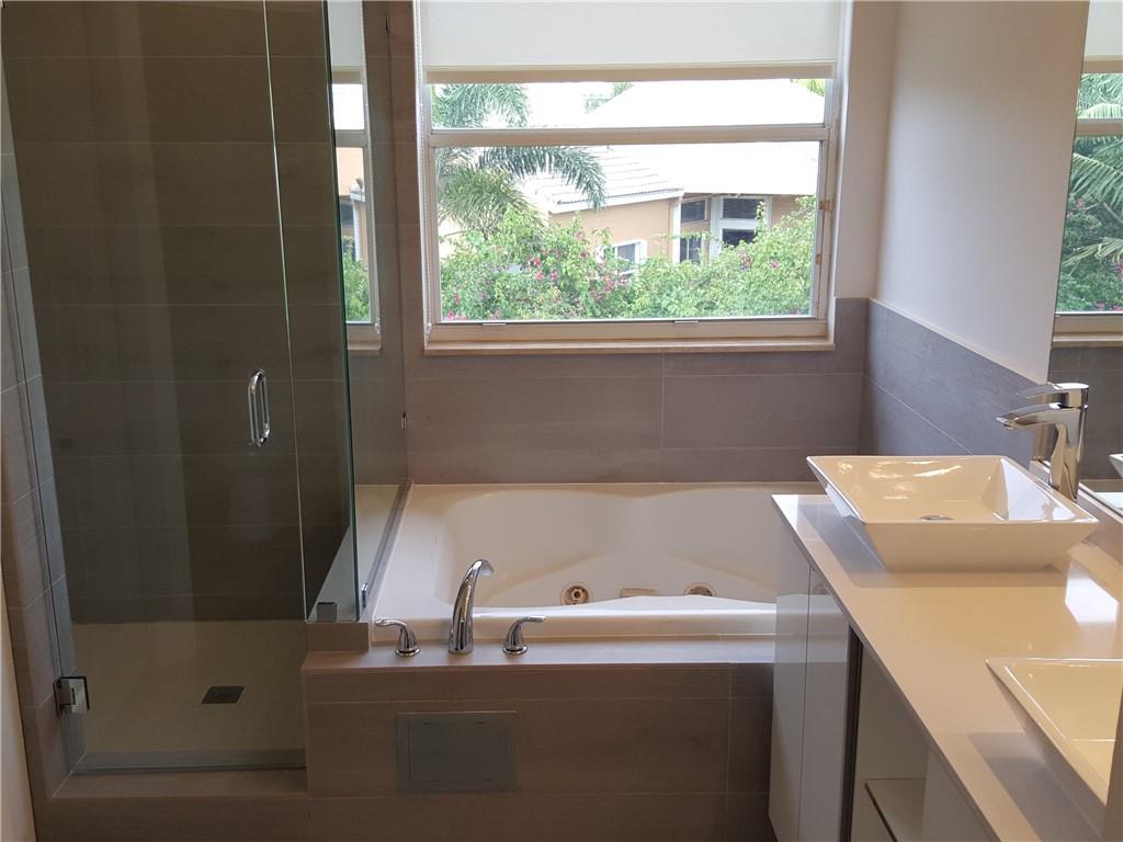 Property professionally remodeled with quality materials and great taste, large format polished porcelain tile first floor, European kitchen cabinets, ice white brand new Kitchen appliances, quartz countertops, real wood modern profile all millwork, LE D recessed lights throughout, concrete Pavers patio, European chrome bathroom fixtures, premium porcelain tile and glass mosaics in bathrooms & smooth ceilings.