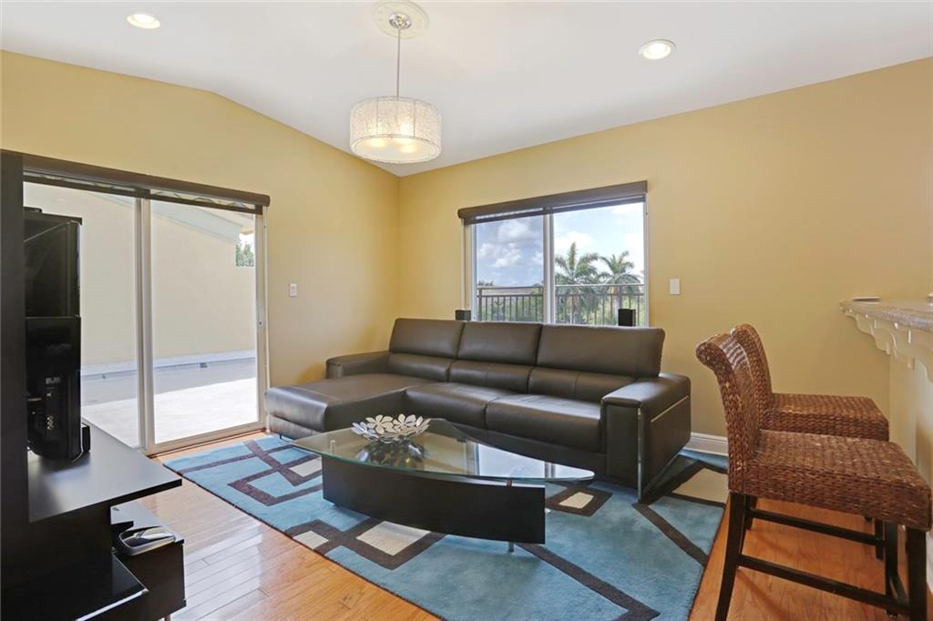 Coral Ridge Beauty! This 3 bedroom, 3.5 bath luxury townhome with pool in the Bayview Elementary School district is a must see! Interior features include an open kitchen with granite countertops, Kitchen Aid SS appliances. Corner unit offer lots of natural light through the Hurricane Impact windows. Perfect layout, Living area downstairs, Master + office on second level, guest bedroom, lounge/bar & new roof top deck upstairs. Wood floors, spa master bathroom, front loader W/D, modern finishes throughout!
