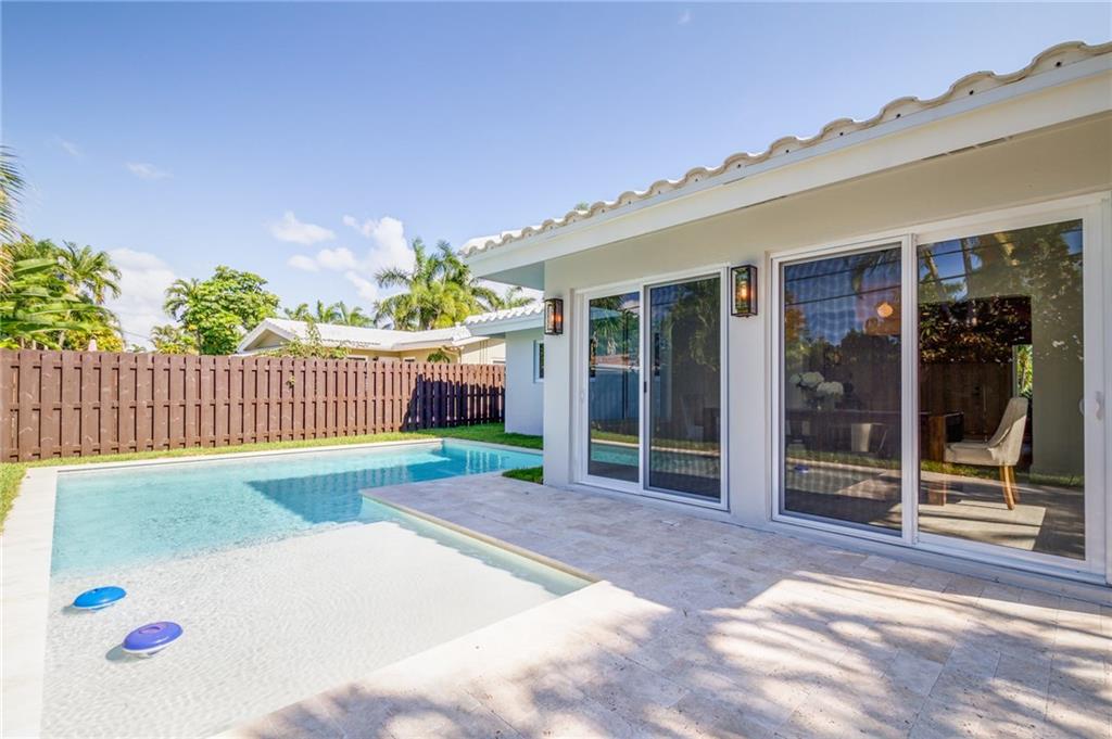 Immaculate professionally designed & renovated pool home from Restore 818 invites comfort & exudes modern elegance. Generous spaces, stylish finishes & new modern pool provide the perfect setting for relaxing & entertaining. Natural light flows throughout the open layout. Huge new gourmet kitchen w Quartzite counters to inspire your inner chef & new master bath provides a daily spa-like retreat. On a quiet street w a park-like setting in A-rated Floranada School District.