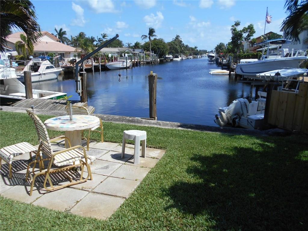Incredible value for a waterfront home! Open & roomy, with beautiful down-canal water views from many rooms. And it's the lowest price Water Front in the area. 35 ft on the water. New kitchen 2014 with updated cabinets, appliances & Quartz counters. New tile floors in kitchen & utility room, new A/C in 2013. Big Florida Room at rear of home. Enclosed carport used for bonus room/office, could be converted to garage or 3rd bedroom. Property sold as-is, subject to inspection.