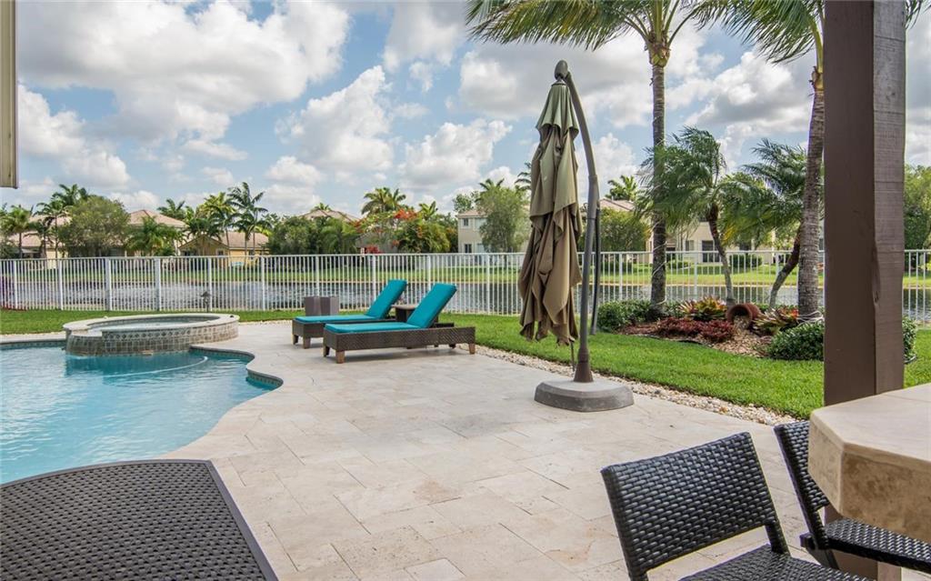 LOOKING FOR A SPECIAL HOME! THIS IS IT! OVERSIZED CUL DE SAC LOT WITH VERY NICE LAKE VIEWS. GREAT BACKYARD EXPOSURE. OUTDOOR LIVING AS ITS BEST WITH OVERSIZED PATIO, AUTOMATIC MOSQUITO SPRAY SYSTEM, SUMMER KITCHEN, STONE MARBLE FLOORS, HEATED POOL & SPA! 4 BEDROOMS + DEN WITH 3.5 BATHS. RECENTLY RENOVATED WITH NEW KITCHEN, QUARTZ TOPS, STAINLESS STEEL APPLIANCES, NEW BATHS, LAMINATE WOOD FLOORS IN KIDS BEDROOMS, CALIFORNIA CLOSETS, ACCORDION SHUTTERS, POOL RECENTLY RESURFACE , AC UNITS PLACED IN 2010