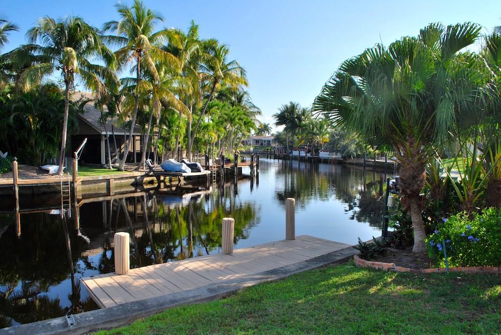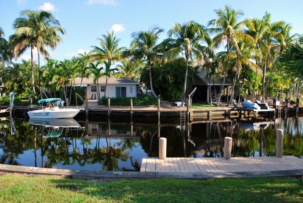 2-story waterfront home in Cypress Harbor. Over 2,000 sq ft living area with open floor plan on ocean access canal via 2 fixed bridges. Newer tile roof and Air Conditioning units. Master suite on 1st floor with adjoining office. Kitchen with stainless appliances overlooks huge living room and family room. Two bedrooms upstairs. Walk out roof-top deck from bedroom with views. Chicago brick patio off Family Room overlooks landscaped back yard and canal. Endless potential turning this gem into a dream home.