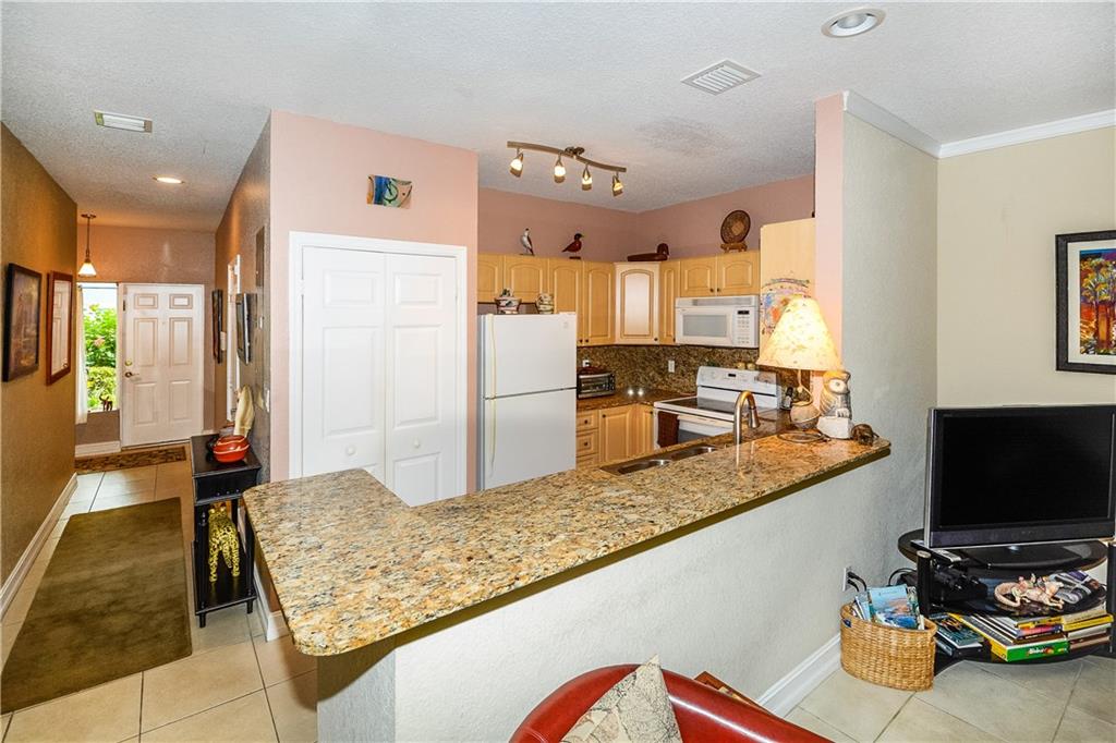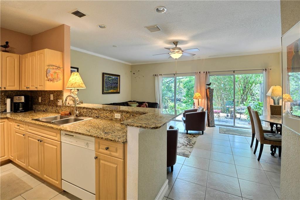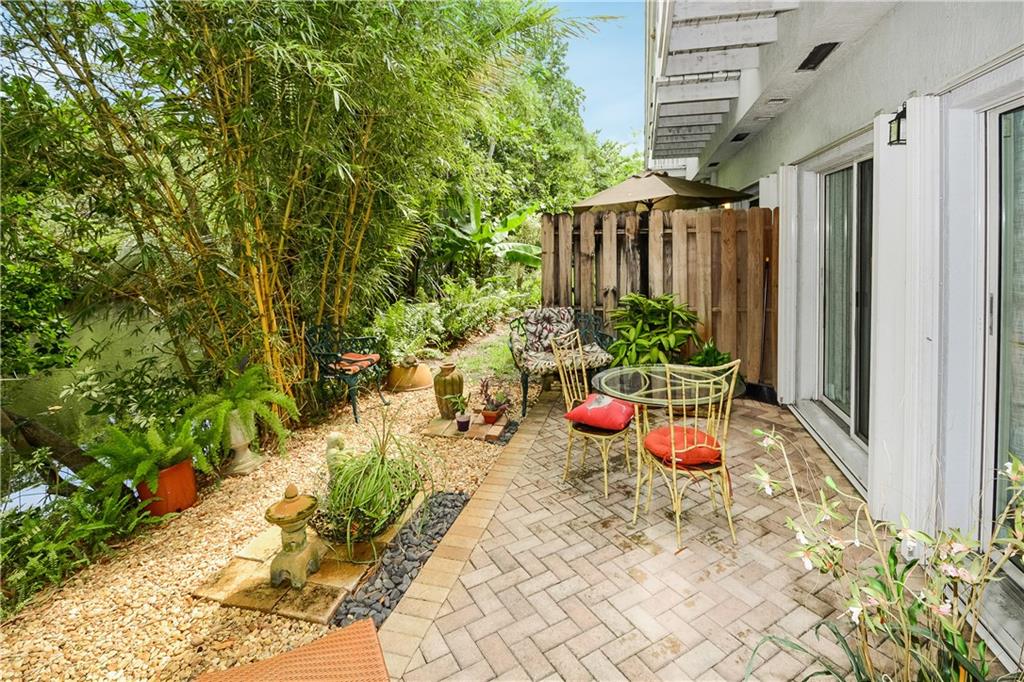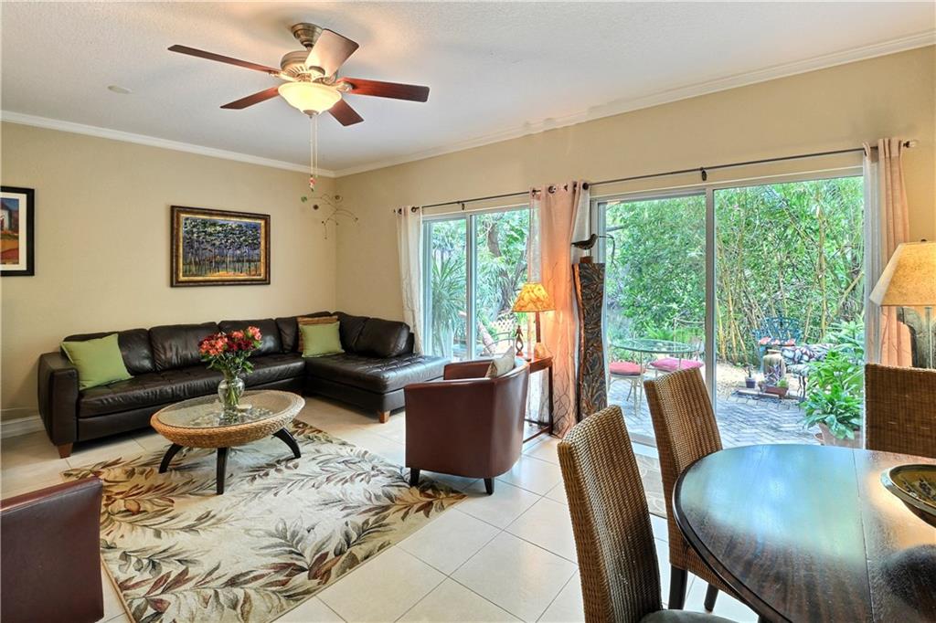 Three bedroom, two and 1/2 bath townhouse. Very popular gated community blocks from Wilton Drive. Private and secluded with only 44 units and a community pool. Kitchen with wood cabinets and granite counters opens to tranquil waterfront views. Double sliding doors to back yard patio space. Spacious master bedroom with sitting area and double slider door views of tropical landscaping and canal. New washer/dryer conveniently located on second level. Third bedroom for guests or small office. One car garage.
