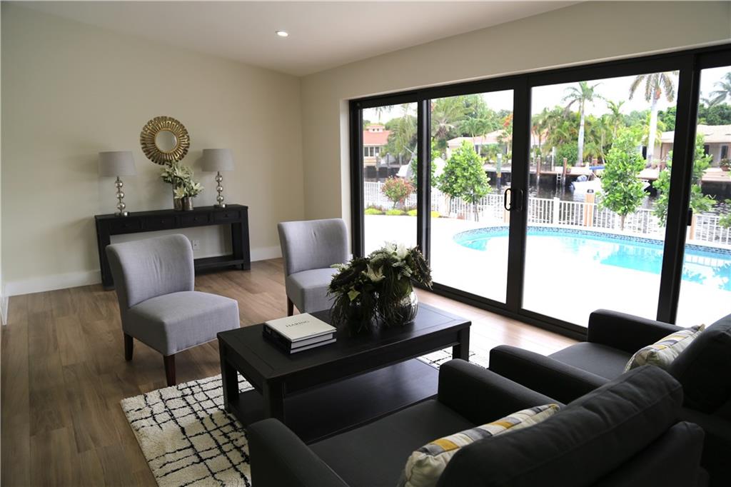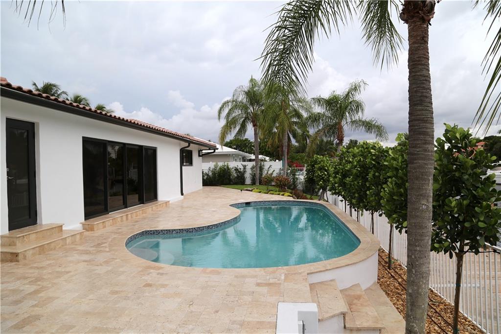 LOCATED IN THE HEART OF CORAL RIDGE COUNTRY CLUB WITH 100' ON THE WATER AND DIRECT OCEAN ACCESS. HOME HAS BEEN REMODELED WITH NEW KITCHEN, BATHS, IMPACT WINDOWS AND DOORS, TILE FLOORS, APPLIANCES, FIREPLACE, DOCK, FENCING AND MORE. GREAT NEW EUROPEAN MODERN HOME WITH BUILT IN CUSTOM CABINETRY CLOSETS IN GUEST ROOMS AND TWO CUSTOM WALK-INS IN MASTER SUITE. WATER VIEWS FROM ALMOST EVERY ROOM. TWO MINUTES TO INTRACOASTAL WATERWAY. CENTRALLY LOCATED TO SHOPPING MALLS, 5 MIN TO BEACH, CLOSE TO AIRPORT.