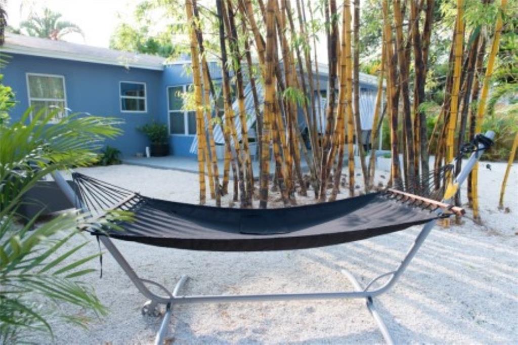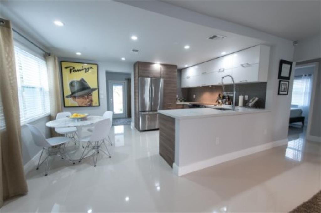 Mid Century Designer Home. Blocks from Wilton Drive and minutes from the beach. This spacious Turn key home boasts over 1300 sq feet of living entertaining space, 2 Bedrooms, 1 Bath plus a Sun Room/Office and Laundry. Private, gated yard with room for a large pool. Garden views from every room. 24 x 24 tile floors throughout. Anderson Impact Windows and Doors, Chefs kitchen with top-of-the-line KithenAid Appliances, frosted glass interior doors, custom closets, covered patio