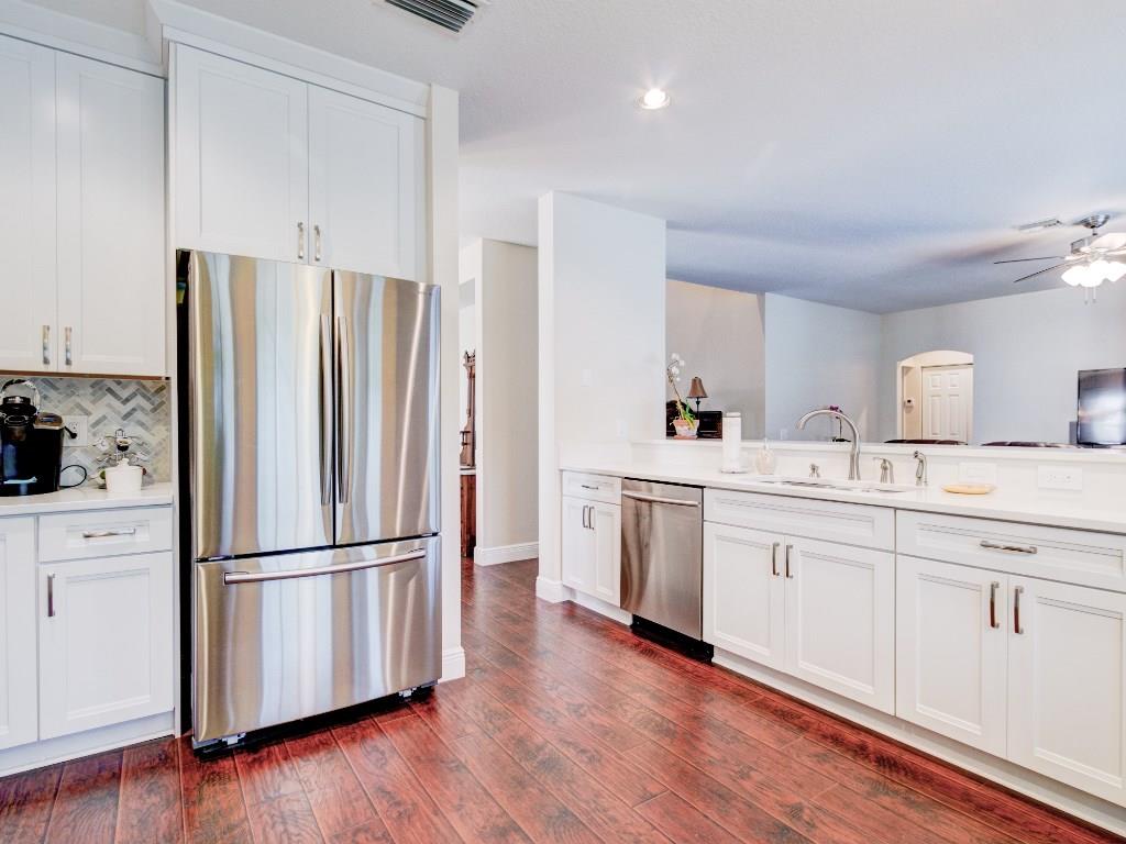 This 5 BR 4 Bath Pool home includes Lakefront Location with beautiful upgrades throughout. Complete Brand New Kitchen, Extended Cabinetry Corner Lazy Susan, Quartz Countertops, Stainless Appliances. Large Planked Premium Grade Laminate Wood Flooring thru-out. Plantation Shutters, Customized Walk-in closets, Complete Interior Freshly Painted, Newer Dual Zone A/C's. Open Salt-water Pool w/extended pavered patio. Backyard Fenced. Two-Car Garage extended pavered driveway. Move-In Ready. Weston A+ Schools.