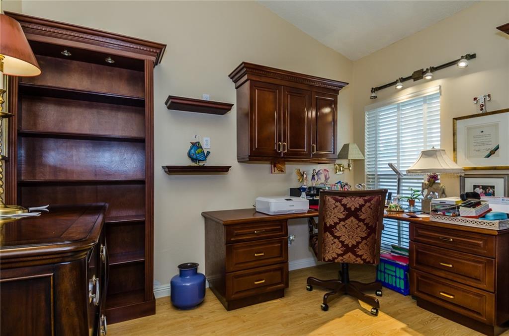Outstanding home with a unique floor plan and custom features thru-out - Water view - Quality window treatments & fans - Loads of storage closets along with an additional 10X13ft built-in closet which can easily convert to an additional bdrm - Custom bui lt in office/3rd Bdrm- Spiral staircase leading to large loft - Upgraded bathrooms- High impact windows - Circular driveway- Newer Ac/ & Roof- This house is a must see and your client will not be disapointed. Too many upgrades and extras to list.