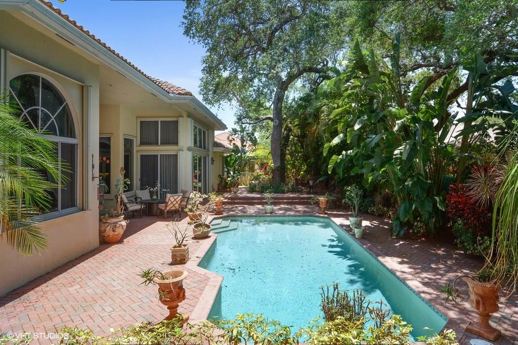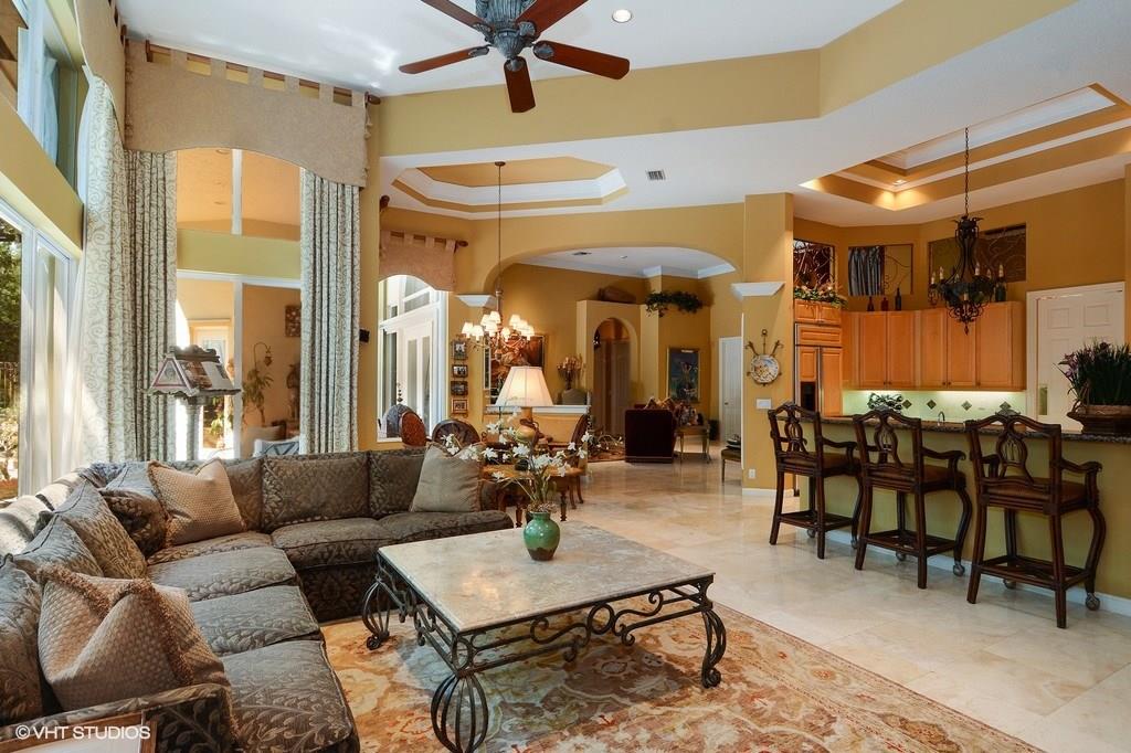 Stunningly elevated and nestled in a hammock of oak trees in Hollywood Oaks, this home greets you with 14 and 17 foot ceilings and over 3200 sq. ft. of luxury upon entering. Floor plan includes four bedrooms, fourth is optional den/office. Secluded master's quarters feature vaulted ceilings, walk-in closets and Onyx vanities. Open living areas - kitchen, living room, breakfast, formal living room - filled with natural light. Oversized lot with private yard; no house to the rear! Pool and three car garage.