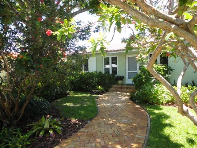This tastefully upgraded home has an open living plan with streams of natural light. Impact windows & doors, elegant master bath, stainless kitchen, quartz counter tops, wood and Cuban tile floors, newer roof (2008.) Secluded tropical garden/patio has great space for a sleek modern pool. Attached garage is behind house via 6th Ct cul-de-sac. Fireplace, spacious bedrooms and walk-in closets. This is an exceptional property on quiet tree lined street close to beach, downtown & shopping. True Florida living!