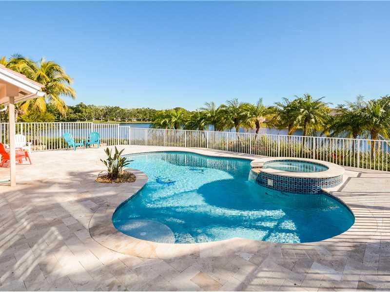 THREE BEDROOMS PLUS A LOFT! THIS GREAT HOUSE IS ON A HUGE, WIDE LAKE FRONT LOT AND SITS ON A CUL DE SAC! BRAND NEW HEATED SALTWATER POOL WITH LED LIGHTS AND TRAVERTINE MARBLE DECKING!PROFESSIONALLY LANDSCAPED WITH LED LIGHTS ALSO! BARREL TILE ROOF, NEW WO OD FLOORS, ALARM SYSTEM, FRENCH DOORS, SPRINKLERS OFF THE LAKE AND MORE!